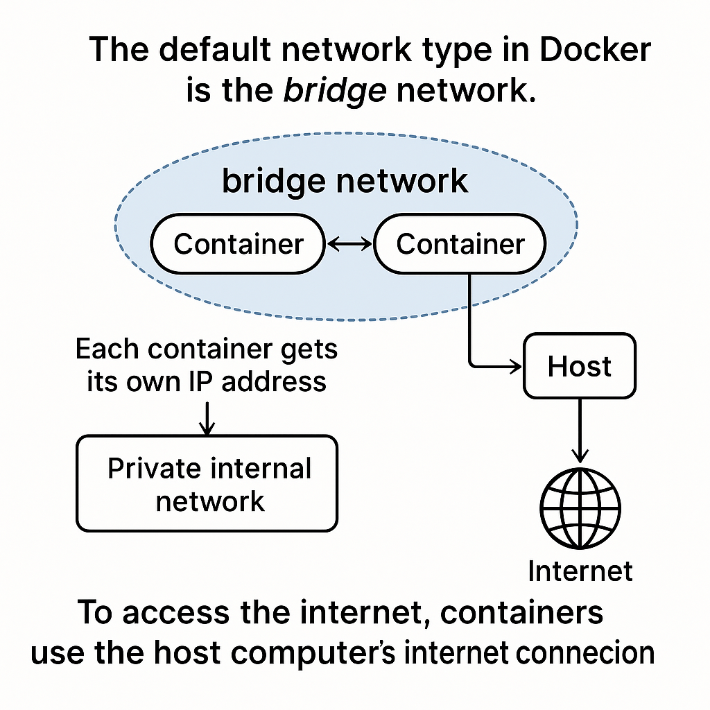 When you run a Docker container, it uses a network called Bridge by default. This is like a private road inside Docker that lets containers talk to each other.